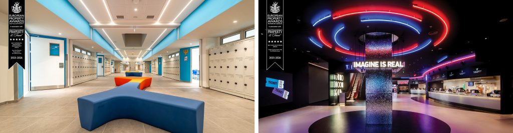 Village Cinemas at The Mall Athens was honoured as Best Mixed-Use Interior in Greece and shortlisted for Best in Europe, redefining entertainment through strategic design. Every element—from lighting and flow to user experience—was orchestrated to transform a simple movie visit into a seamless, emotional journey that connects people through design.